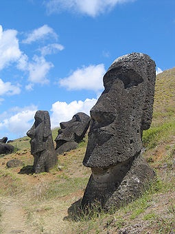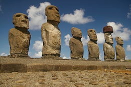 De kolossale beelden op Paaseiland (de moai) worden door velen gerekend tot de niet klassieke wereldwonderen. De moai, tot negeneneenhalve meter hoge beelden, zijn vervaardigd uit zacht vulkanisch gesteente (tufsteen). De makers zijn de voorvaderen van een groot deel van de huidige eilandbewoners. De witte oogschijven, die in deze kassen zaten, werden pas in 1978 voor het eerst teruggevonden. De meeste moai stonden opgesteld op een platform of ahu en keken naar het binnenland. Slechts zeven beelden, opgesteld in een rij van klein naar groot en ietwat spottend de zeven apen (los siete monos) genoemd, keken naar de zee. De moai zijn voorstellingen van voorouders die om vruchtbaarheid smeken. Voortplanting was op een extreem geïsoleerd eiland als deze van cruciaal belang om te overleven. Er zijn veel voorouderbeelden weer rechtop gezet. Ook hebben vele hun indringende ogen die naar de hemel kijken weer terug, de vooruitstekende lippen waren wellicht getooid met een baard. Opvallend zijn ook de langgerekte oorlellen. Ze tonen aan dat de Langoren toen de moai opgesteld werden de heersers waren over het eiland.